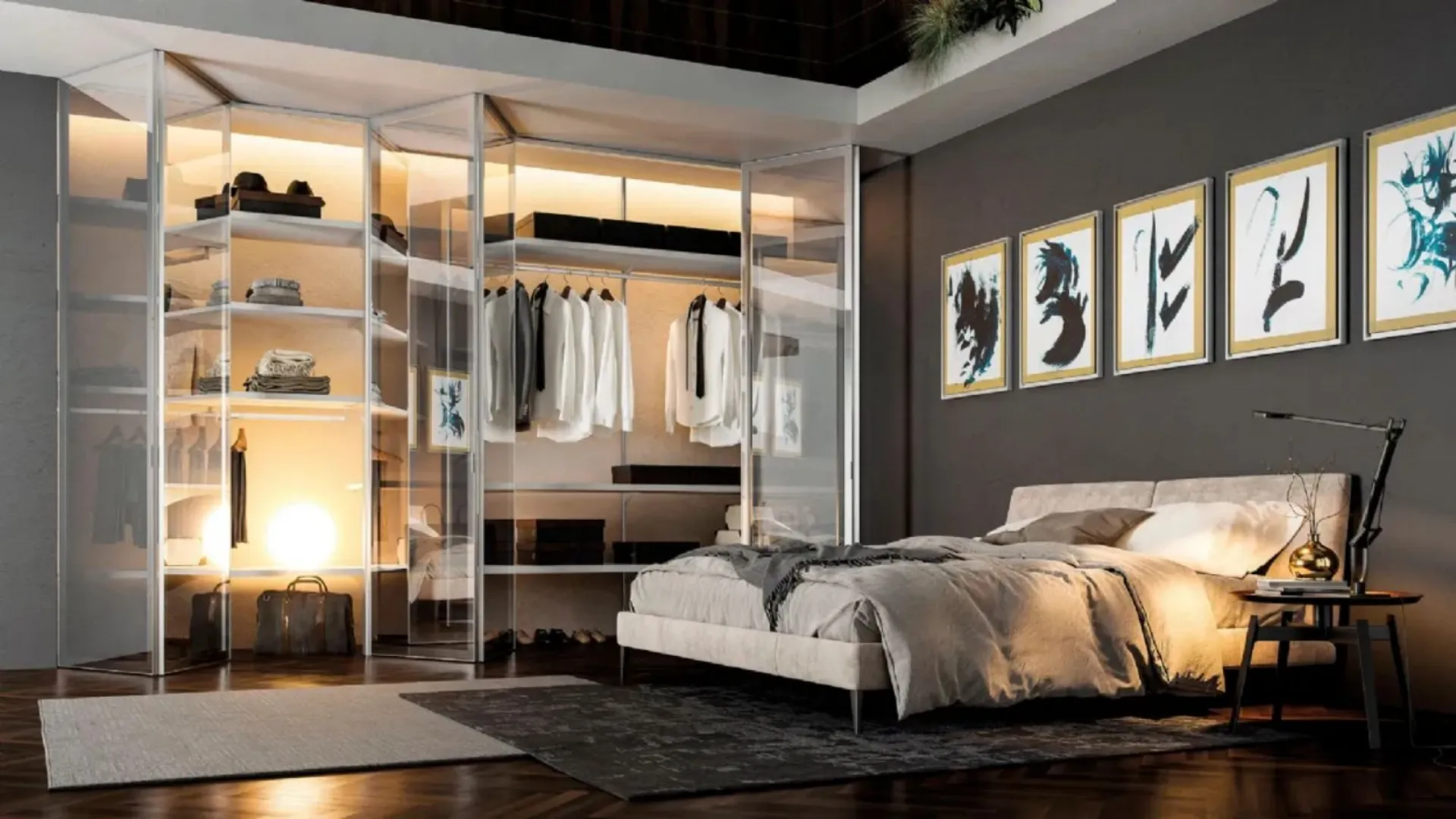 Doal presenta Vega Armadio, un armadio a nicchia elegante con ante a libro in vetro che offre un design d'impatto e la massima praticità.