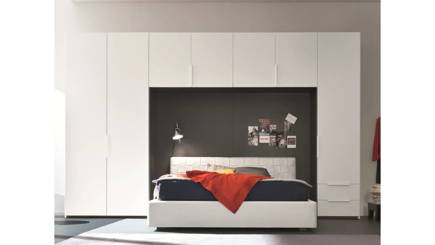 La famosa multinazionale svedese, Ikea, dà la possibilità, ai propri clienti, di progettare la zona notte della loro abitazione seguendo le proprie esigenze e i propri gusti personali. Attraverso quindi l'utilizzo di moduli basici da abbinare tra loro ognuno può creare la soluzione che più preferisce. È bene comunque precisare che questa azienda non dispone di armadi a ponte componibili già pronti. Però, integrando i mobili ad una struttura per letto, disposta perpendicolarmente o parallelamente ai pensili superiori, si può dar vita ad un perfetto armadio a ponte con letto, singolo o matrimoniale, sottostante. Il sistema componibile più adatto per dar vita a questa tipologia di armadio è il sistema Pax, composto da svariate sezioni di mobili, con ante o senza, che si possono tranquillamente collegare e abbinare tra loro. Un guardaroba angolare Pax a 4 ante ha un costo di 452,50 euro. Ad esso, si possono aggiungere una serie di pensili Metod per creare il ponte sopra la testata del letto. Inoltre, nessuno nega la possibilità di aggiungere altri elementi come librerie, scrivanie o ripiani. Così facendo l'armadio a ponte porterà personalità, oltre che funzionalità, alla stanza. In foto: letto a soppalco Stuva con scrivania e armadio sottostante.