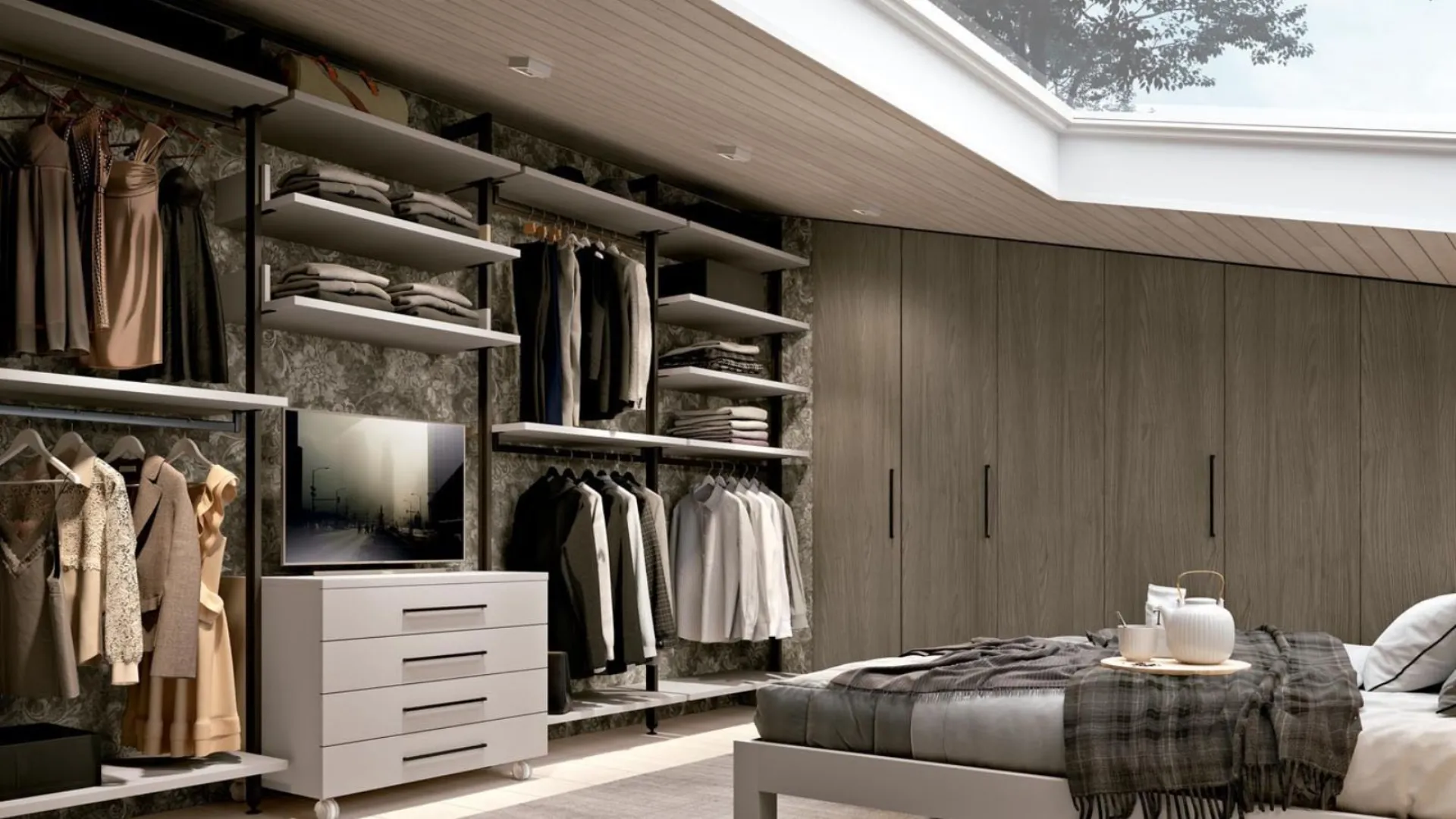 La linea Intermezzo di Adok consente di realizzare guardaroba con tagli su misura per declinarli con precisione sartoriale a qualsiasi spiovenza della falda.